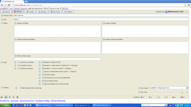 We like using AuditMyPC for this step. Then click the image to the right that says “Audit my PC Sitemap Generator + Webmaster Tool” to start the program.