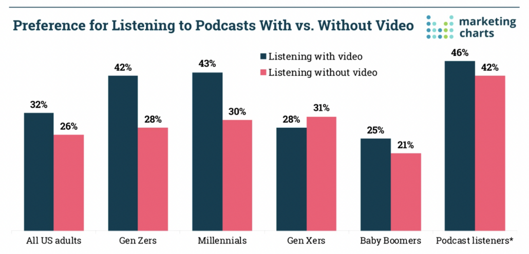 I strongly recommend recording a video version of your podcast. Recent surveys suggest that the majority of podcast listeners prefer listening to episodes with videos.