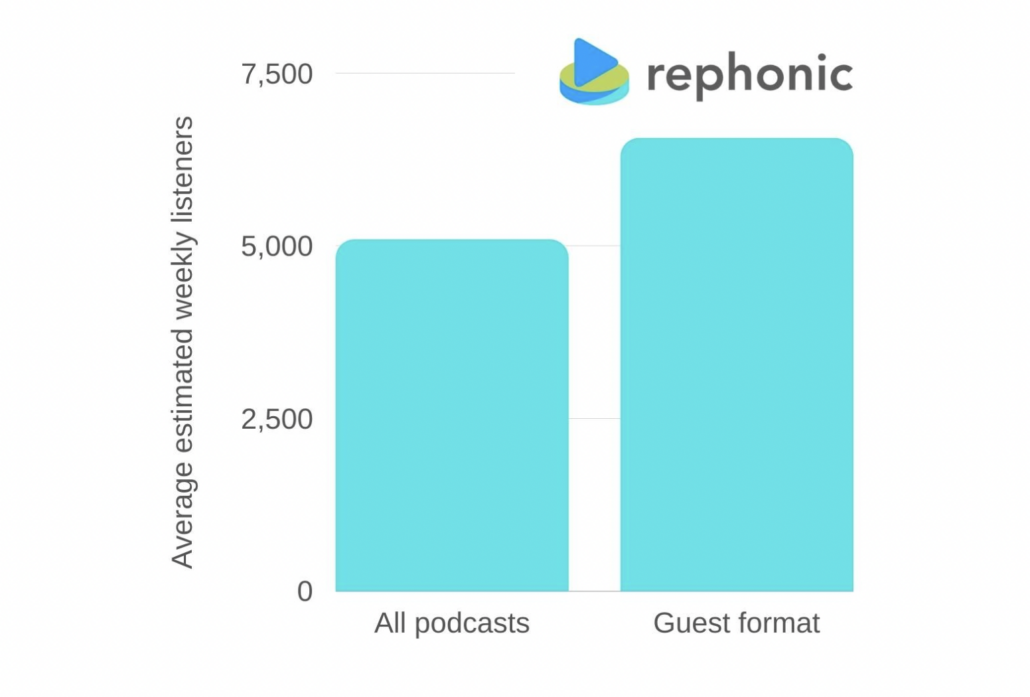 The study found that the average podcast with a guest has about 30% more listeners compared to all other formats.