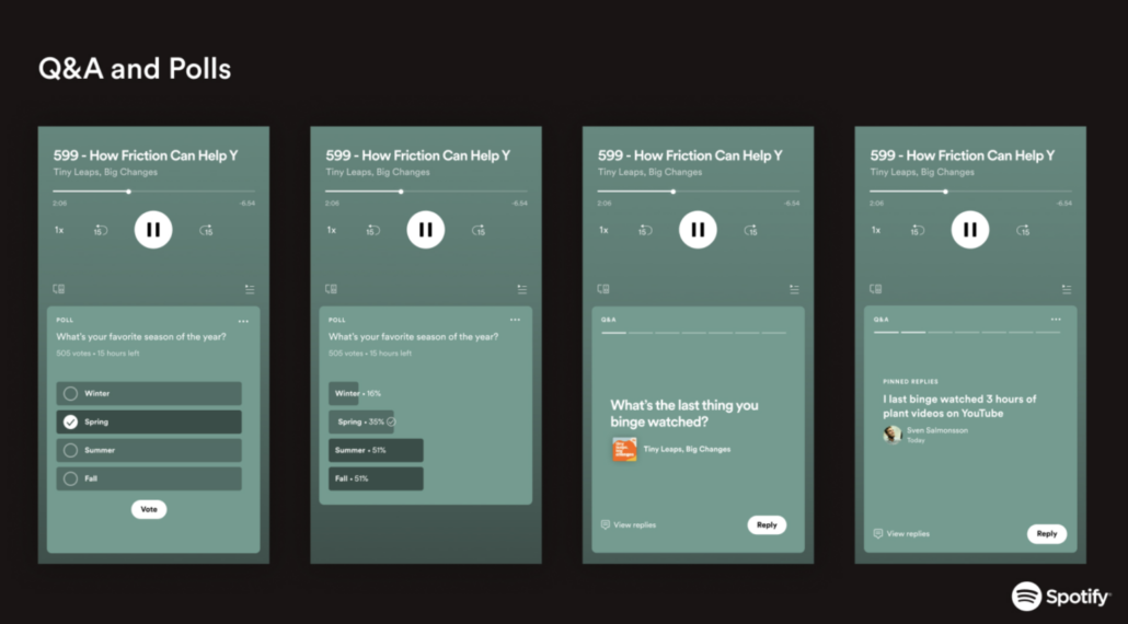 There are multiple ways to ask your audience for advice. If your podcast is available on Spotify, you can use this platform to create interactive polls with your audience.
