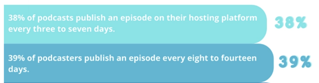 At a minimum, I recommend a weekly release schedule. 77% of podcasts are published every three to 14 days. So that’s what most listeners have come to expect from podcasters.