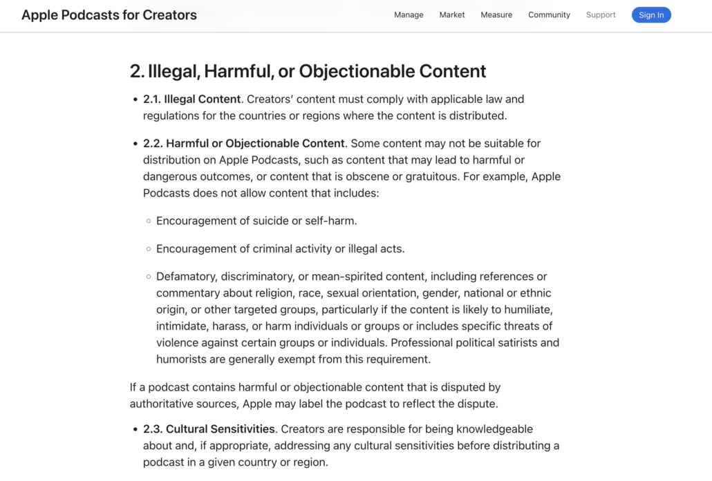 Podcasts are somewhat flexible, but you still need to maintain certain guidelines. Podcasting platforms have rules that must be followed, or they won’t host your content. For example, here are some of Apple’s community guidelines for podcasters: