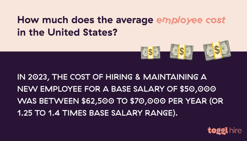 Research suggests that it costs an average of $4,700 per employee—just on hiring expenses (like job ads and recruiting). Once you factor in costs associated with training, development, and retention, this jumps closer to $12,000.
