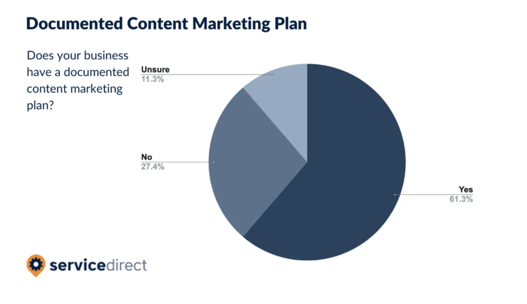 Just 61% of businesses have a documented content marketing plan, which means that roughly 4 out of 10 companies do not.