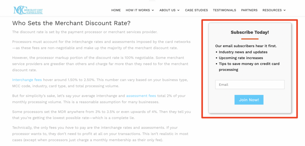 The opt-in is on the side of every blog post, and it’s just a one-field form that just asks for an email address.