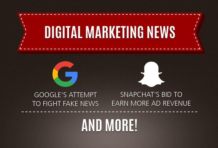 Digital Marketing News: Google’s Attempt to Fight Fake News, Snapchat’s Bid to Earn More Ad Revenue and More