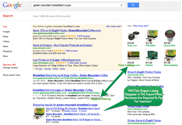 Recently, Google announced changes in the Google Shopping offered as a free service to Ecommerce merchants for the Fall of 2012. For those not familiar with this search option, when you click on the Shopping tab at the Google Search Engine Results Page (SERP), products appear with associated prices. Also, depending on the search query, the Shopping Results show up in organic listings. The big change they are announcing is it will now cost to submit your products for Google Shopping. What was once free now comes with a fee. Of course, this will make a dent in an Ecommerce merchant’s bottom line, but this also could be signaling changes for the world of search marketing in general.