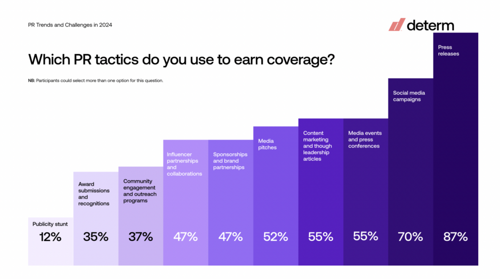In fact, a 2024 survey found that press releases are still the most widely used business tactic for PR coverage.