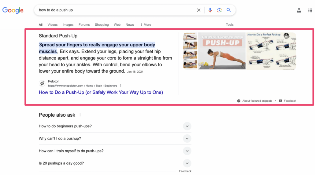 Here’s another example that shows an AI overview and featured snippet both appearing in the SERPs: