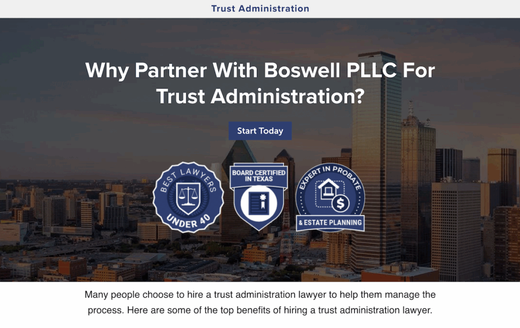 Trust badges are more commonly associated with security for scenarios when people are entering personal information or credit card details online. That doesn’t always translate to law firms, as being PCI-compliant isn’t really relevant for lawyers as it is for an ecommerce site.