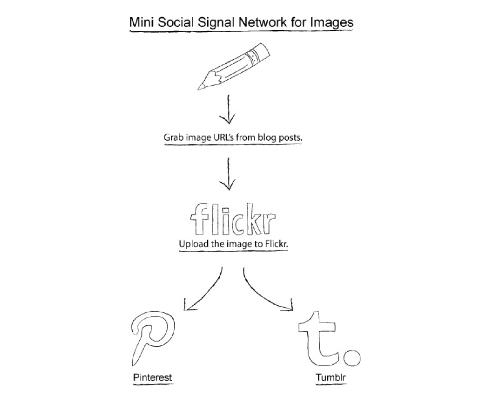 You need to create two accounts for this small social signals network, a Pinterest account and a Tumblr account. We use these sites because when you blog a picture it allows you to show where the source of the image which means you can link to your Flickr.