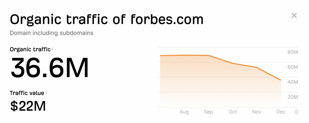 Well, as traffic from Forbes dropped 48% in the past six months, organic clicks to this website have skyrocketed 715% over the same period.