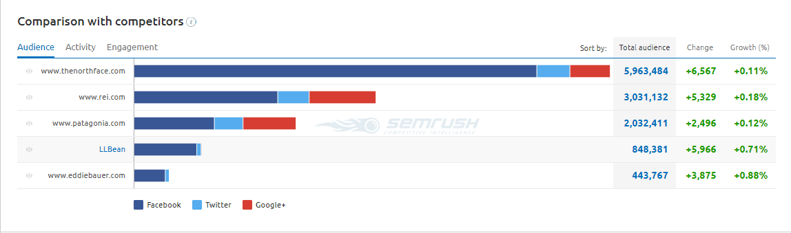 You can also see how The North Face has almost double the audience then the competitor in second – REI.