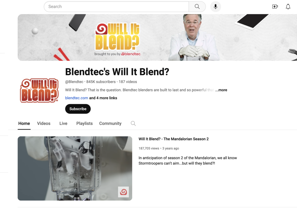 A blender is a blender, and Blendtec’s marketing team knows this too well. To make their products stand out, they created several videos testing the power of their blenders against anything from glow sticks to an Apple Watch. As a result, Blendtec has roughly 845,000 subscribers on YouTube.