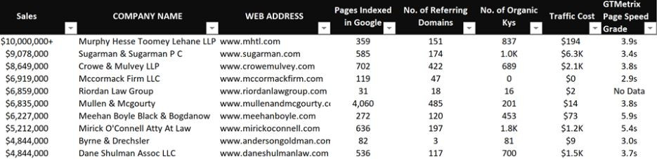 When compared to some of the top personal injury firms in the immediate area, there is only one on this shortlist that has more SEO traffic value.